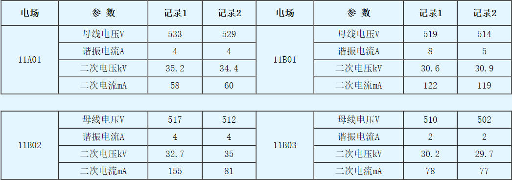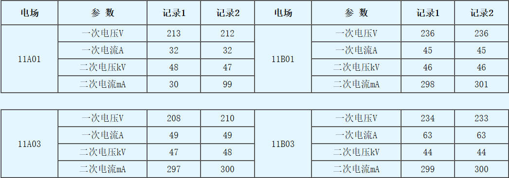 采用龙净环保公司的高频电源节能改造后,系统运行稳定,除尘效率略有提高,节电效果显著。(部分参数)