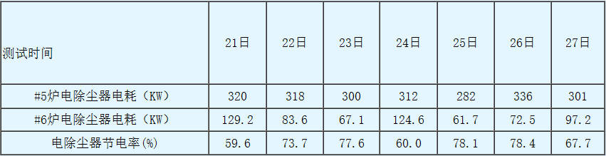 中电投某电厂2台300MW机组5#炉、6#炉负荷基本上一样,除尘器结构一样, 运行的工况一样,08年#6炉实施节能升级改造,运行在系统节能管理控制下;#5炉运行在常规监控下,统计一天整台电除尘器的TR总电量的单位平均值,通 过统计,#6炉电除尘器比#5炉电除尘器节能60%以上。与07年对比,#6炉电除尘电耗08年5~9月份共节电173.31万KWh,按贵电公司上网电 价0.42元/KWh计算,节约72.79万元。按照2007年#6机组发电量157578.6万KWh,每年可节约114.5万元。由此可见,经济效益 十分可观。
