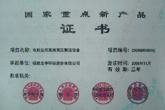 电除尘用高频高压整流设备(简称高频电源)将工频三相交流电源整流后经高频逆变、升压、二次整流后变换成直流负高压输出,可配套各类除尘设备广泛应用于电力、冶金、建材、轻工、化工等众多行业的烟气粉尘治理,是一种高效的除尘、保护环境的重要设备。该产品具有输出纹波小、平均电压电流高、转换效率与功率因数高、采用三相电源对电网影响小、体积小、重量轻、设备成套一体化等多项显著优点,它的研制成功实现了电除尘器配套电源技术水平质的飞跃,是我公司充分利用多年电除尘配套电源研发、生产及应用经验,完全依靠自主创新在电除尘器供电前沿技术方面取得的又一项高新技术产品,并具有完全自主知识产权。经鉴定该成果属国内首创,达到国际先进水平。